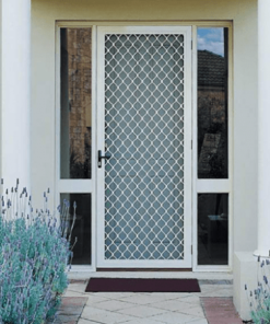 Premium quality diamond grille security door with different types of flyscreen mesh. The combination of flyscreens includes fibreglass, pet mesh, stainless steel and one-way mesh to protect fly coming in the house.